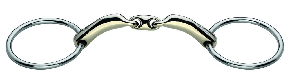 - dzięki zmniejszeniu łącznika z 4 do 2,5 cm ? wędzidło jest bardziej dopasowane do ilości miejsca w końskim pysku oraz zmniejsza się nacisk na boczne części pyska i żuchwy