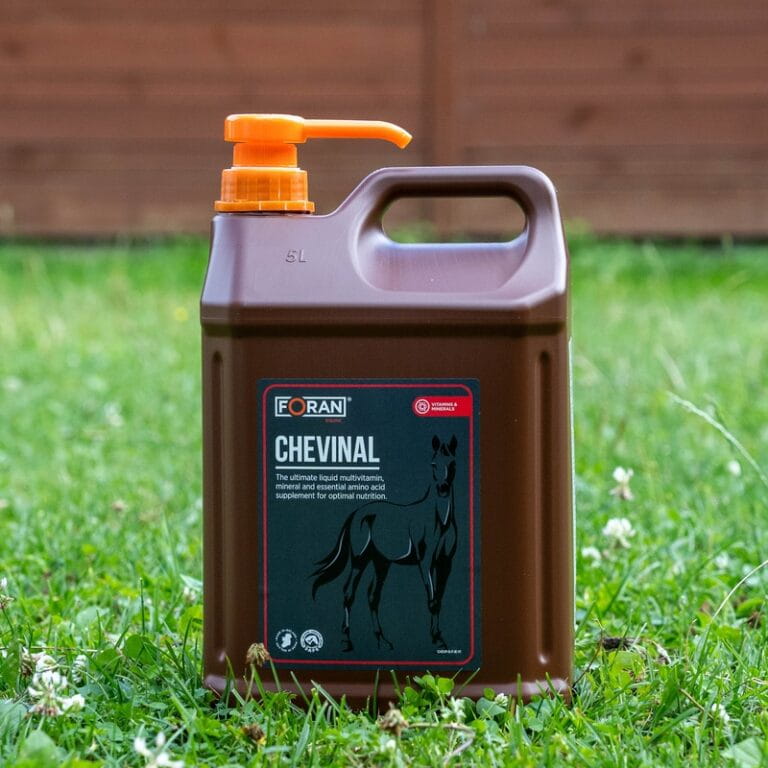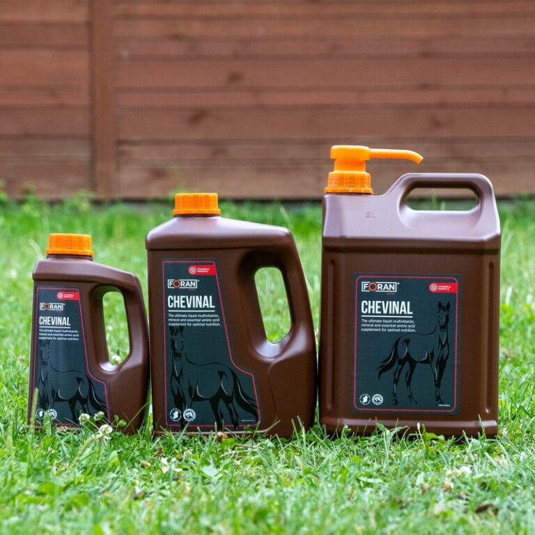 Witaminy i minerały w płynie FORAN Chevinal wzbogacono o niezbędne aminokwasy aby uzupełnić dietę koni.