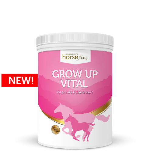 Witaminy i minerały dla źrebiąt HorseLinePro Grow Up Vital w formie proszku.