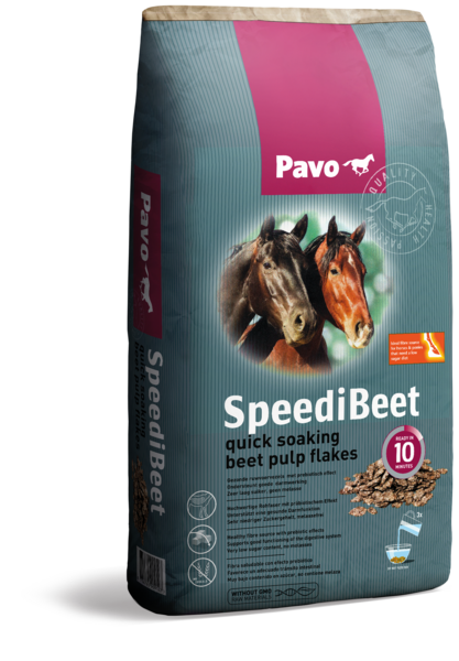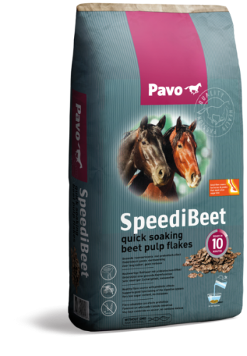 Dodatek paszowy Pavo SpeediBeet - wysłodki buraczane w formie płatków, bez melasy, zbóż i skrobi. Dzięki opatentowanemu procesowi mikronizacji mają krótki czas namaczania – gotowe już po 10 minutach. Są bogate w zdrowy błonnik, głównie pektyny, które wspomagają trawienie i stanowią doskonałe źródło wolno uwalnianej energii.